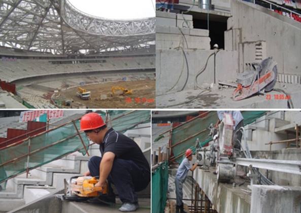 國家體育場(鳥巢):國家體育場工程為特級體育建筑,主體鋼結(jié)構(gòu)形成整體的巨型空間馬鞍形鋼桁架編織式“鳥巢”結(jié)構(gòu),鋼結(jié)構(gòu)總用鋼量為4.2萬噸,混凝土看臺分為上、中、下三層,看臺混凝土結(jié)構(gòu)為地下1層,地上7層的鋼筋混凝土框架-剪力墻結(jié)構(gòu)體系。鋼結(jié)構(gòu)與混凝土看臺上部完全脫開,互不相連,形式上呈相互圍合,基礎(chǔ)則坐在一個相連的基礎(chǔ)底板上。國家體育場可以說是鋼結(jié)構(gòu)建筑的代表建筑。